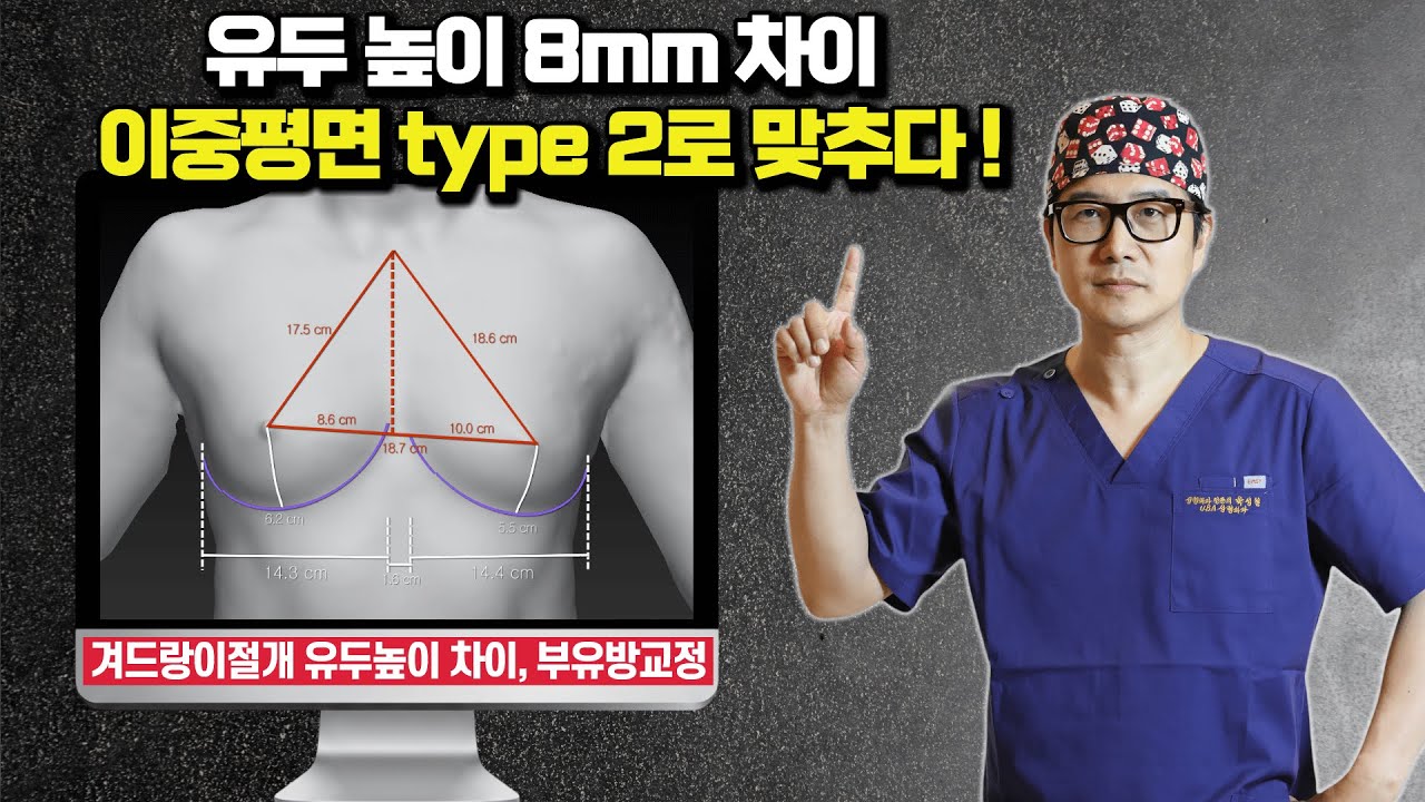 좌우 유두 위치가 다른데…가슴수술 가능할까? 이중평면 type 2로 자연스럽게~